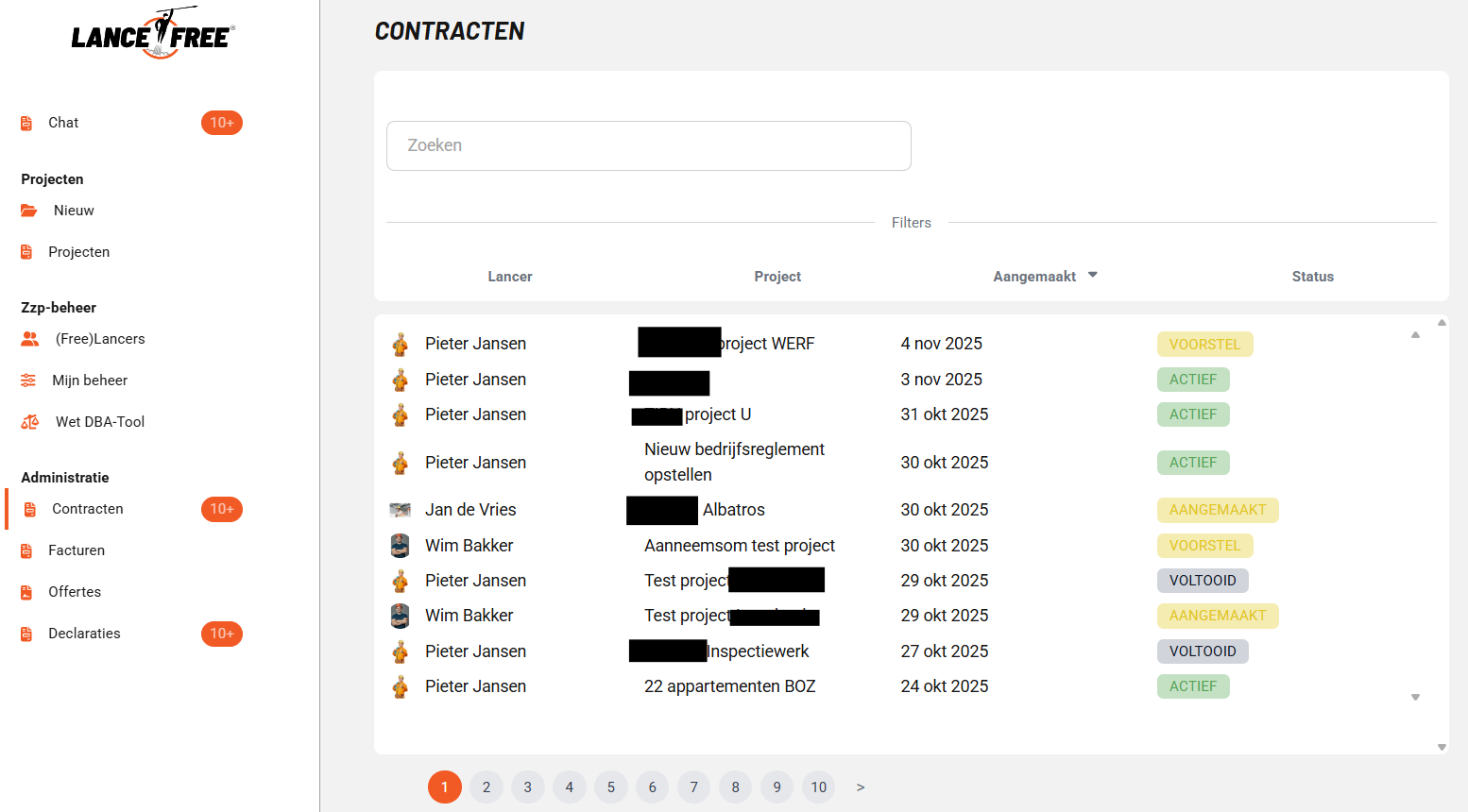 De contracten in Lance Free kunnen verschillende statussen hebben, in dit artikel bespreken we de status ‘aangemaakt’ en ‘voorstel’.