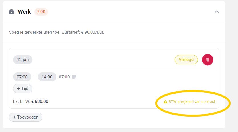 Als de zzp’er uren invult, komt automatisch het juiste BTW tarief hier te staan.