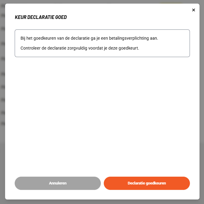 LET OP! Als je een declaratie goedkeurt, kan je niet meer terug en wordt de betaling in gang gezet.