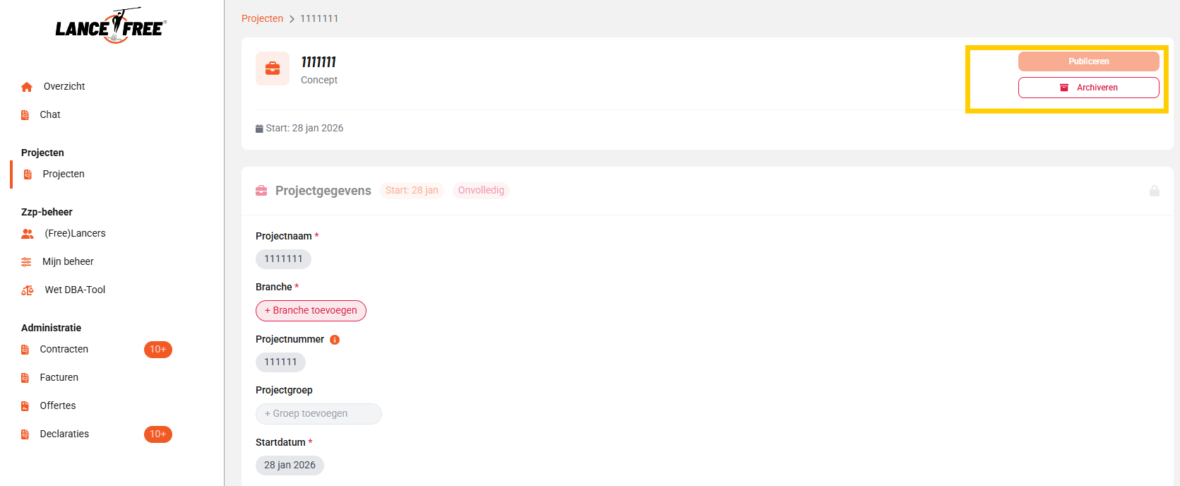 Projecten archiveren - Afgeronde of geannuleerde projecten kunnen nu worden gearchiveerd om het overzicht te behouden. Gearchiveerde projecten zijn niet meer zichtbaar in standaard overzichten en lopende contracten worden automatisch geannuleerd.