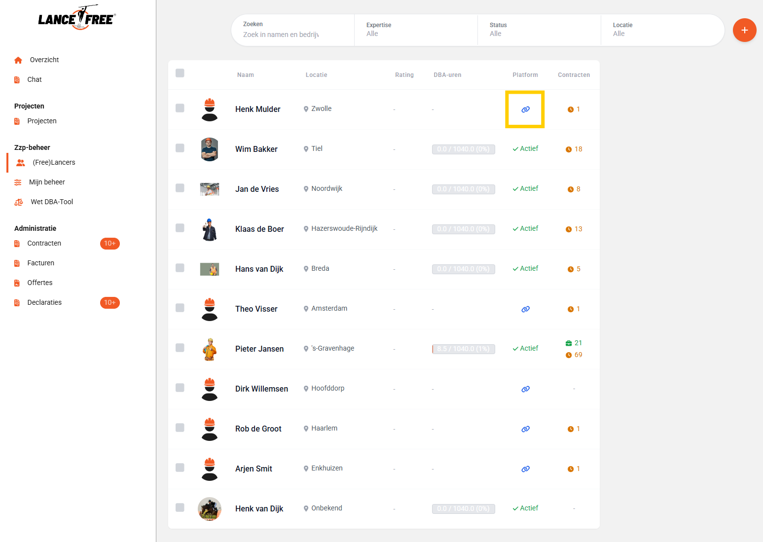 Zzp’er actief op platform - Vanaf nu kan je gemakkelijk controleren of een zzp’er zich heeft aangemeld na een uitnodiging. De status van de zzp’er staat nu op actief. Ook kan je bij de Freelancers filteren op de onboardingstatus (geonboard of niet geonboard).
