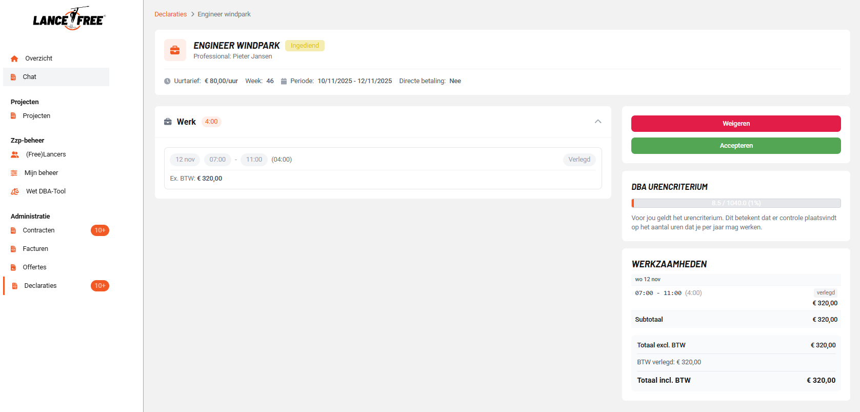 Uitgebreid taaksysteem - Het platform houdt nu automatisch bij welke acties gebruikers nog moeten uitvoeren, zoals het goedkeuren van urenstaten, DBA checklisten invullen, uploaden van documenten of beoordelen van offertes. Dit zorgt voor overzicht en helpt om niets te vergeten.