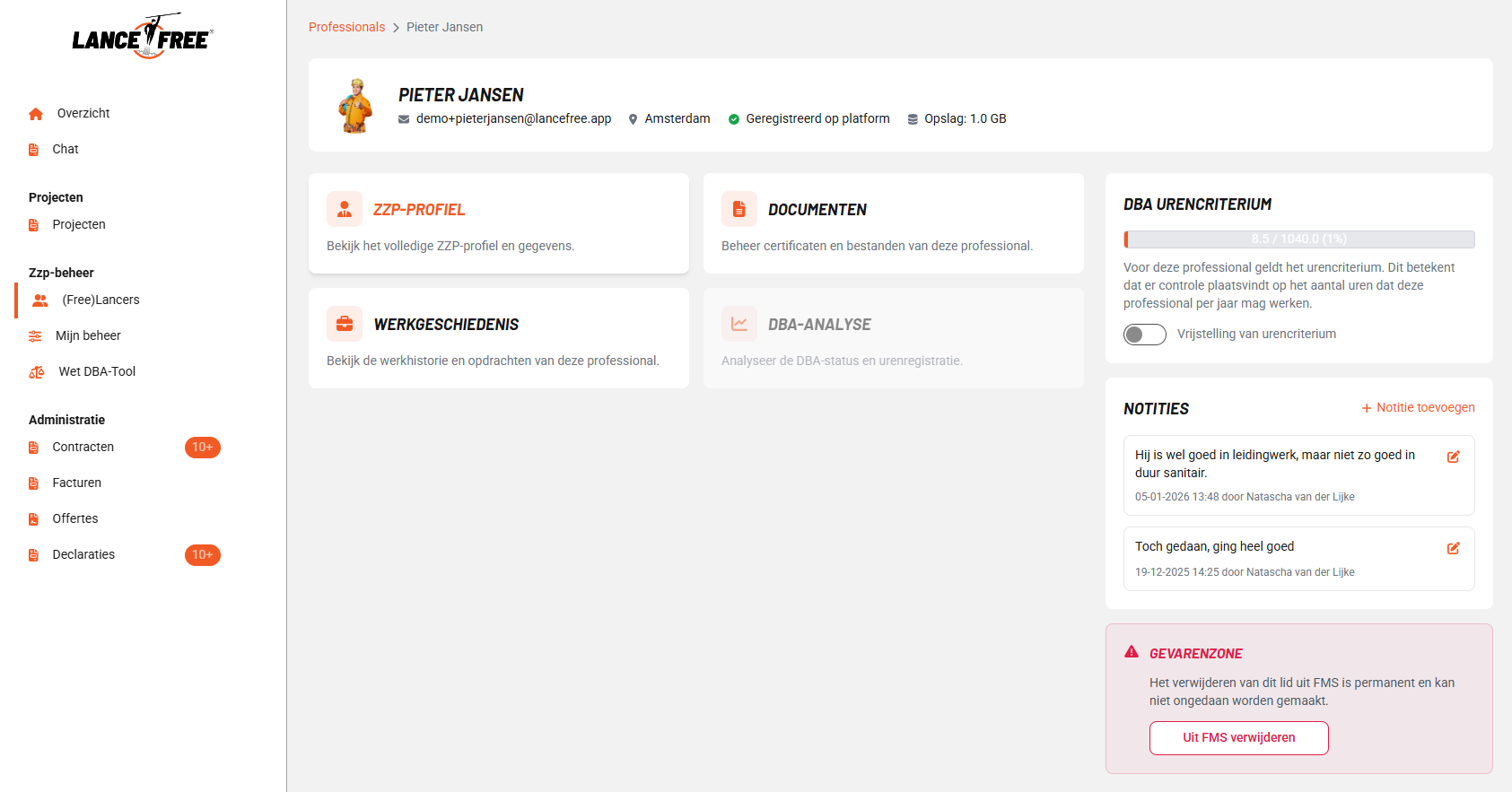 Verwijder button: hiermee verwijder je de zzp’er permanent uit je netwerk.
