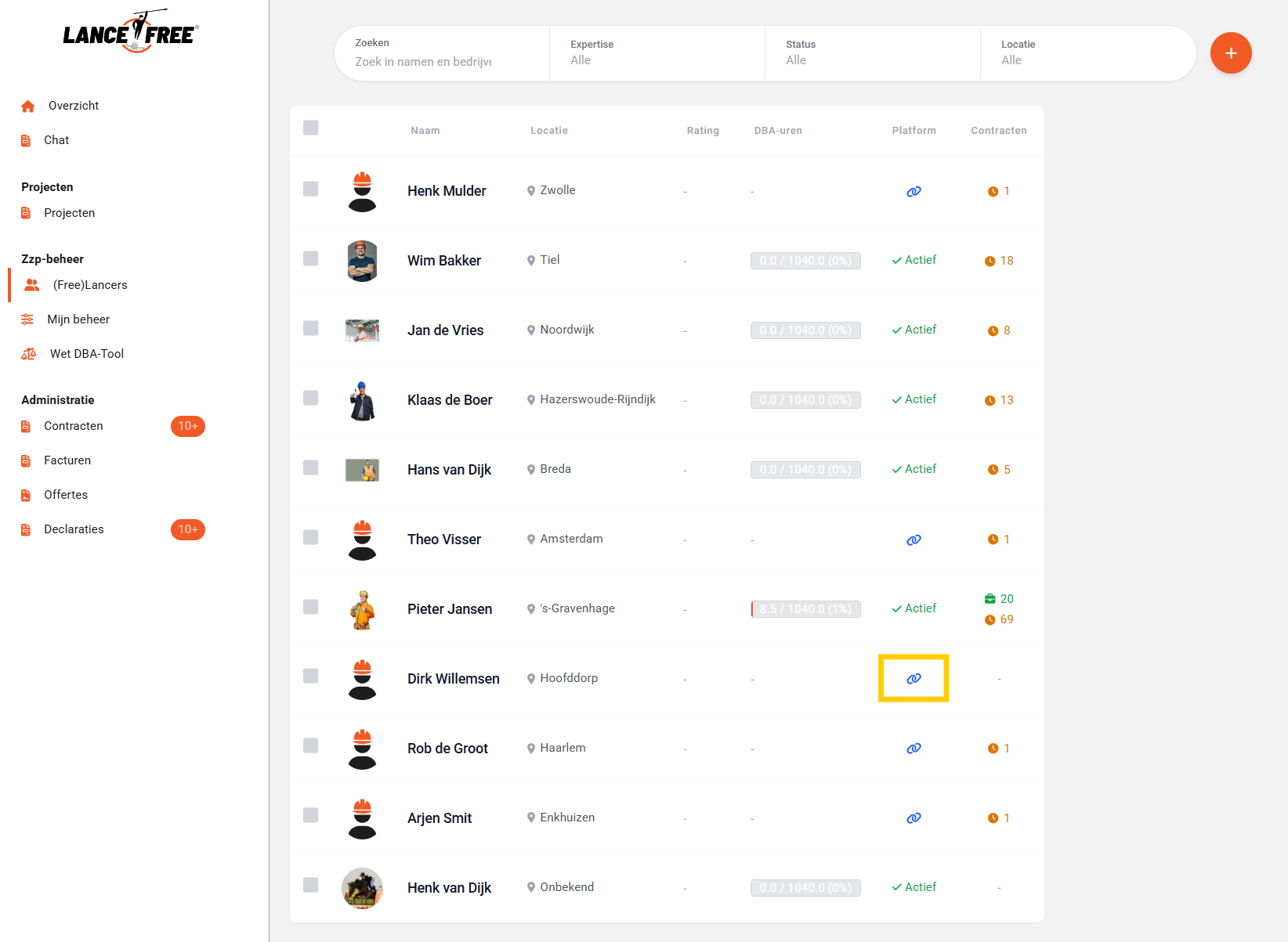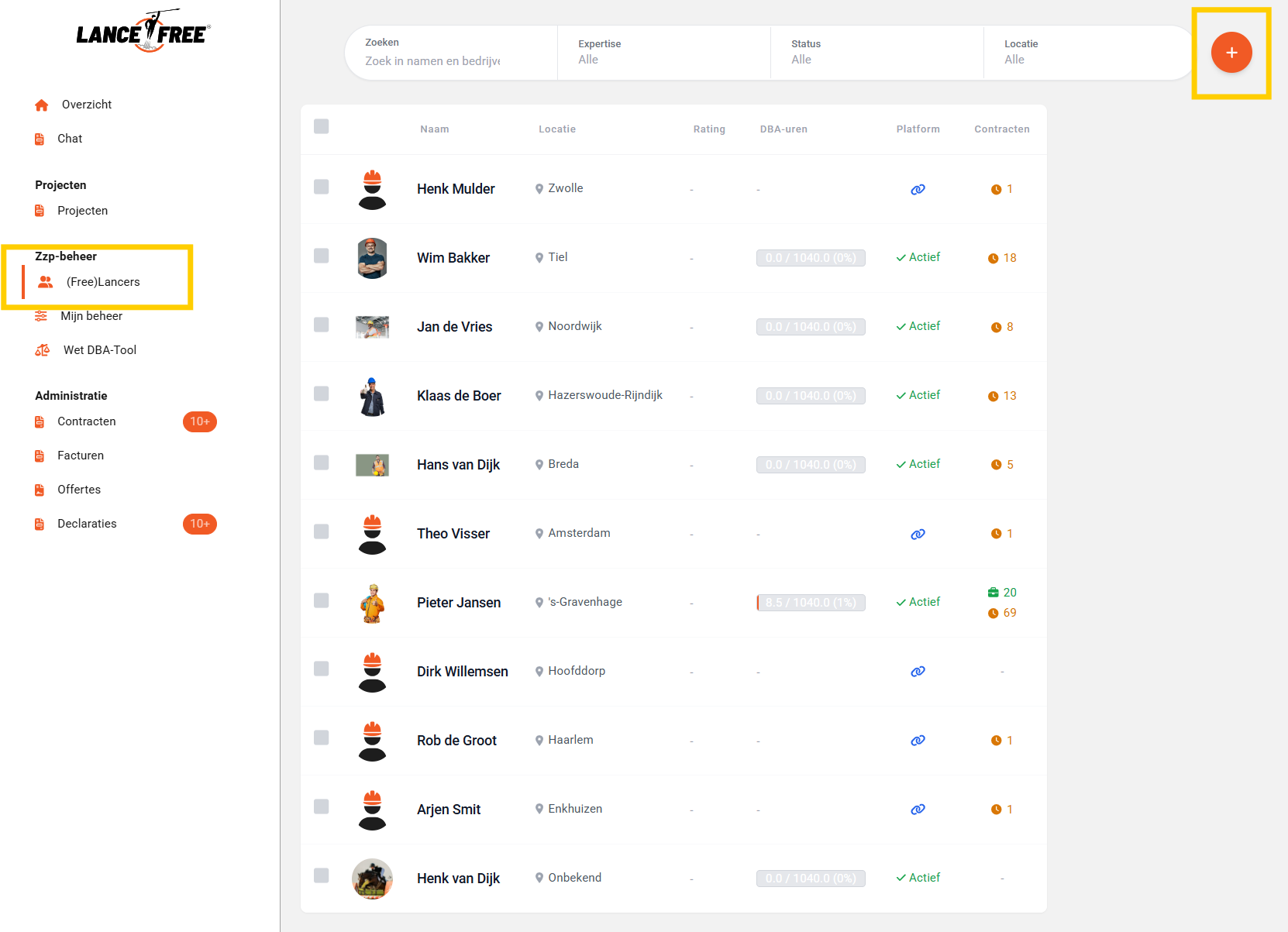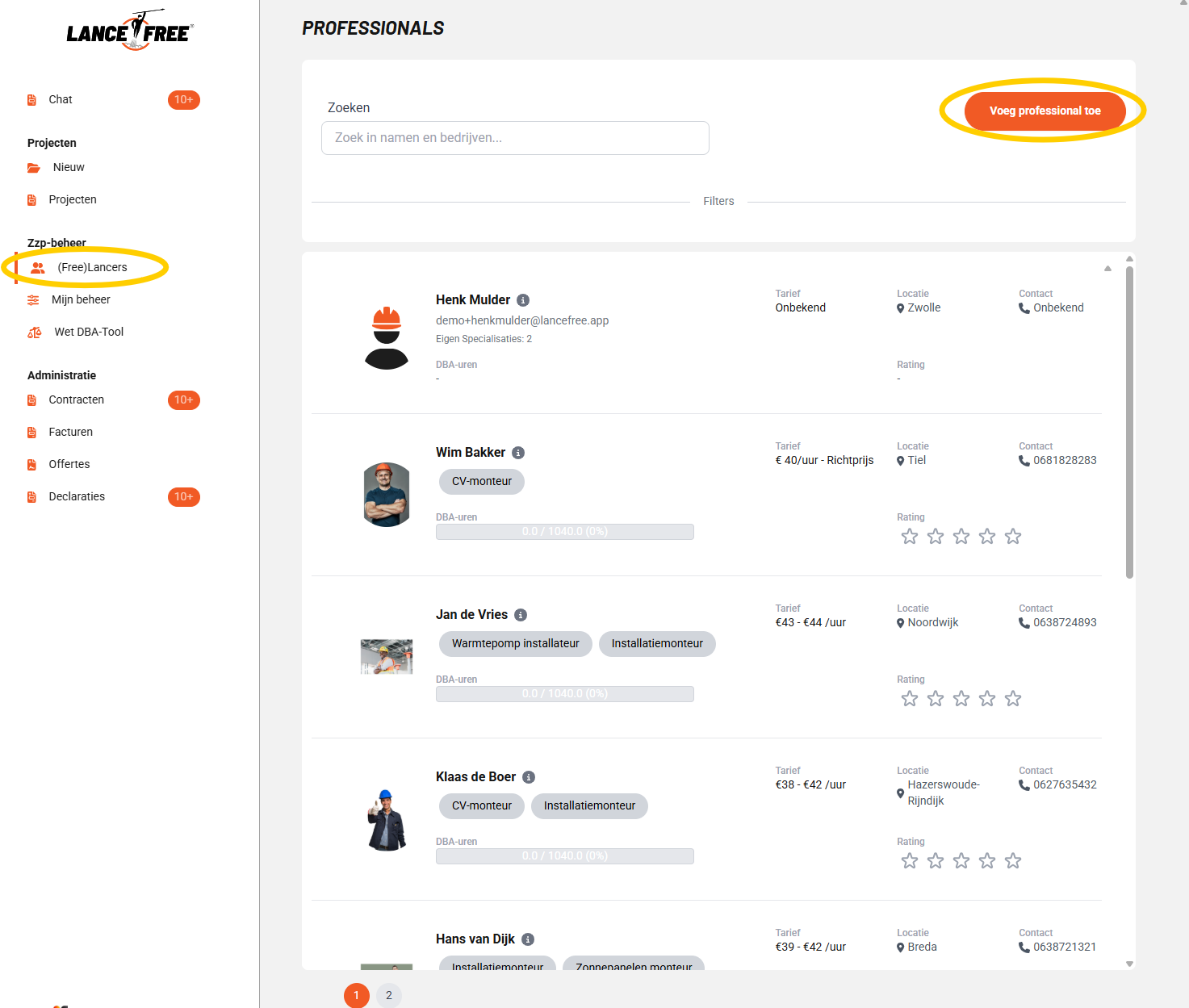 Navigeer naar “Freelancers” en klik op “Voeg professional toe”.